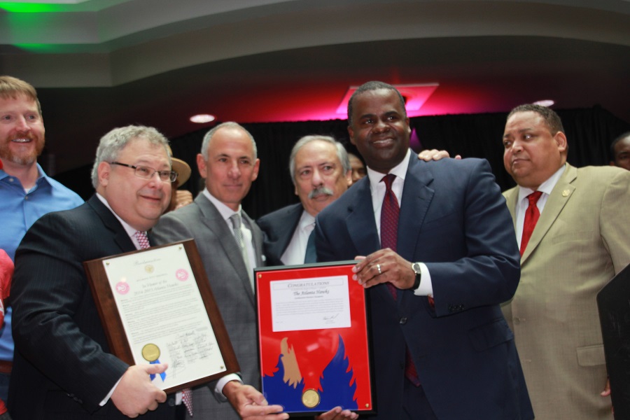 With Mayor Kasim Reed at the helm and V-103 radio personality Ryan Cameron handling the emcee duties, City Hall resembled game-time situations as throngs of fans packed City Hall for the “Appreciation Rally” for winning the most games in franchise history and advancing to the NBA Conference championship series for the first time ever.