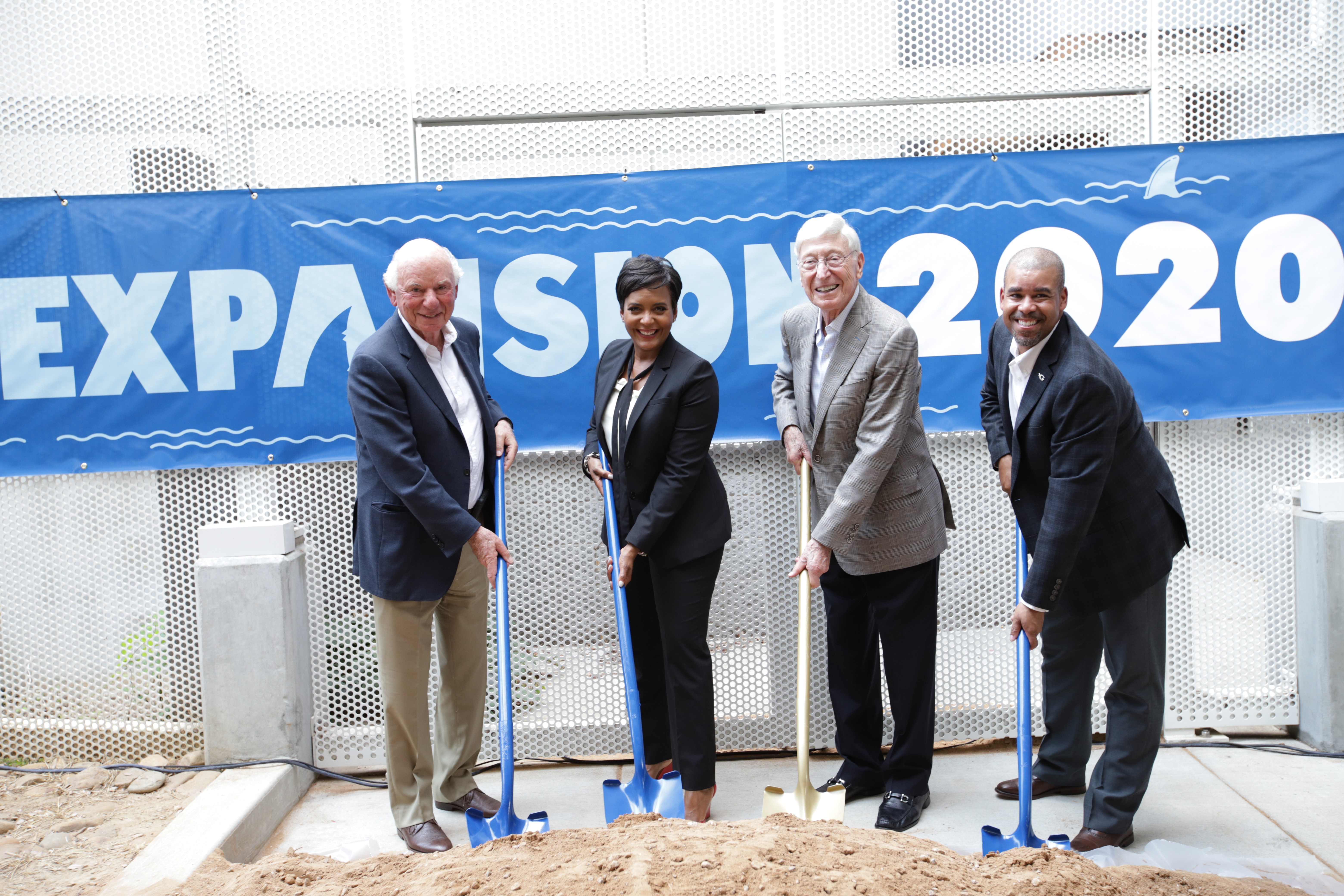 Georgia Aquarium representatives, Atlanta public school students, and local community partners yesterday broke ground on the Aquarium’s Expansion 2020 project. The effort will change the face of the Aquarium by adding a new four-story structure that will complement the existing building’s iconic boat façade and add a 1 million-gallon shark exhibit.