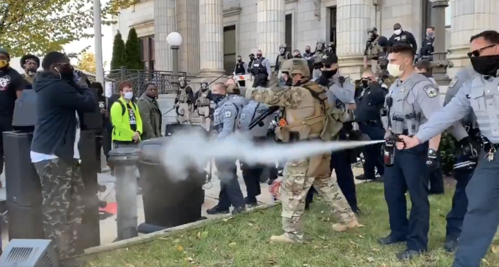 Cops can be seen deliberately and repeatedly spraying pepper spray into the crowd of people as if those they are paid to serve and protect were more like insects they were determined to eradicate.