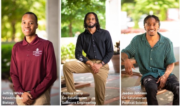 On the heels of the #1 ranking for producing Black male doctoral students by the National Science Foundation, Morehouse College, the nation’s only college dedicated to educating and developing men of color, is proud to announce the academic accolades of its 2022 valedictorian Jeffrey White and co-salutatorians Joshua Curry, Jaeden Johnson and Garret Oatis. Representing four separate academic divisions at the College, the emerging Morehouse men have demonstrated the summits of intellectual discovery and research as they continue their academic pursuits post-graduation. They were honored at the College’s commencement ceremony on Sunday, May 15, 2022.