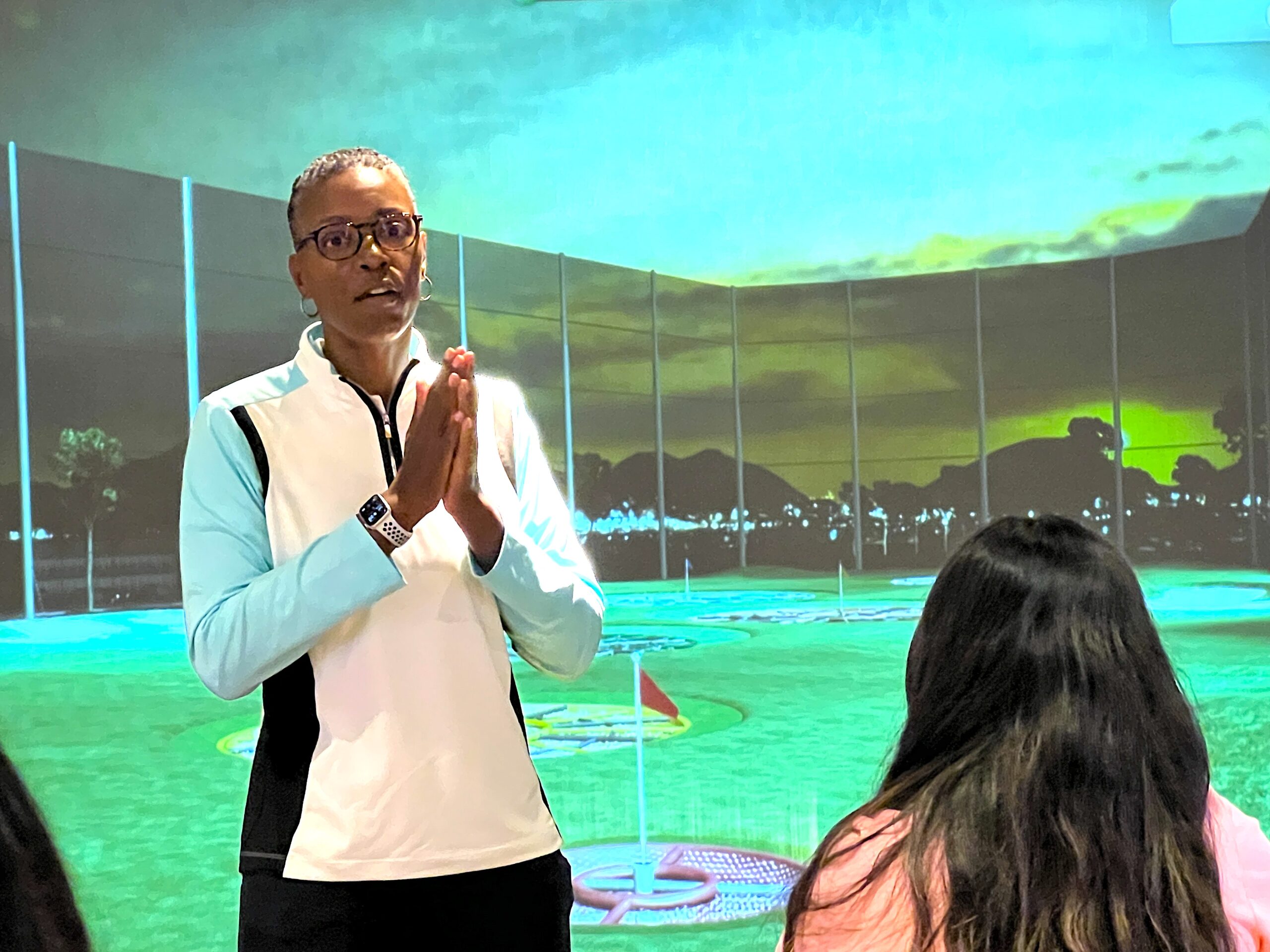 They kicked off the morning with LPGA Teaching Professionals Dr. Greta Anderson and Oneda Castillo giving the attendees lessons on the importance of golf and the type of impact it can have on their careers. The group then took to the range simulator at the Topgolf Swing Suites to practice how to handle their clubs properly and how to swing their clubs.