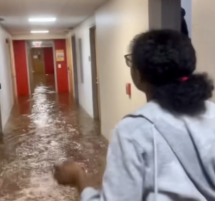 Students at Clark Atlanta University campus posted videos of water that submerged inside of the hall ways at the dorm rooms which led to power outages. One video showed a student whose leg was trapped by a door.