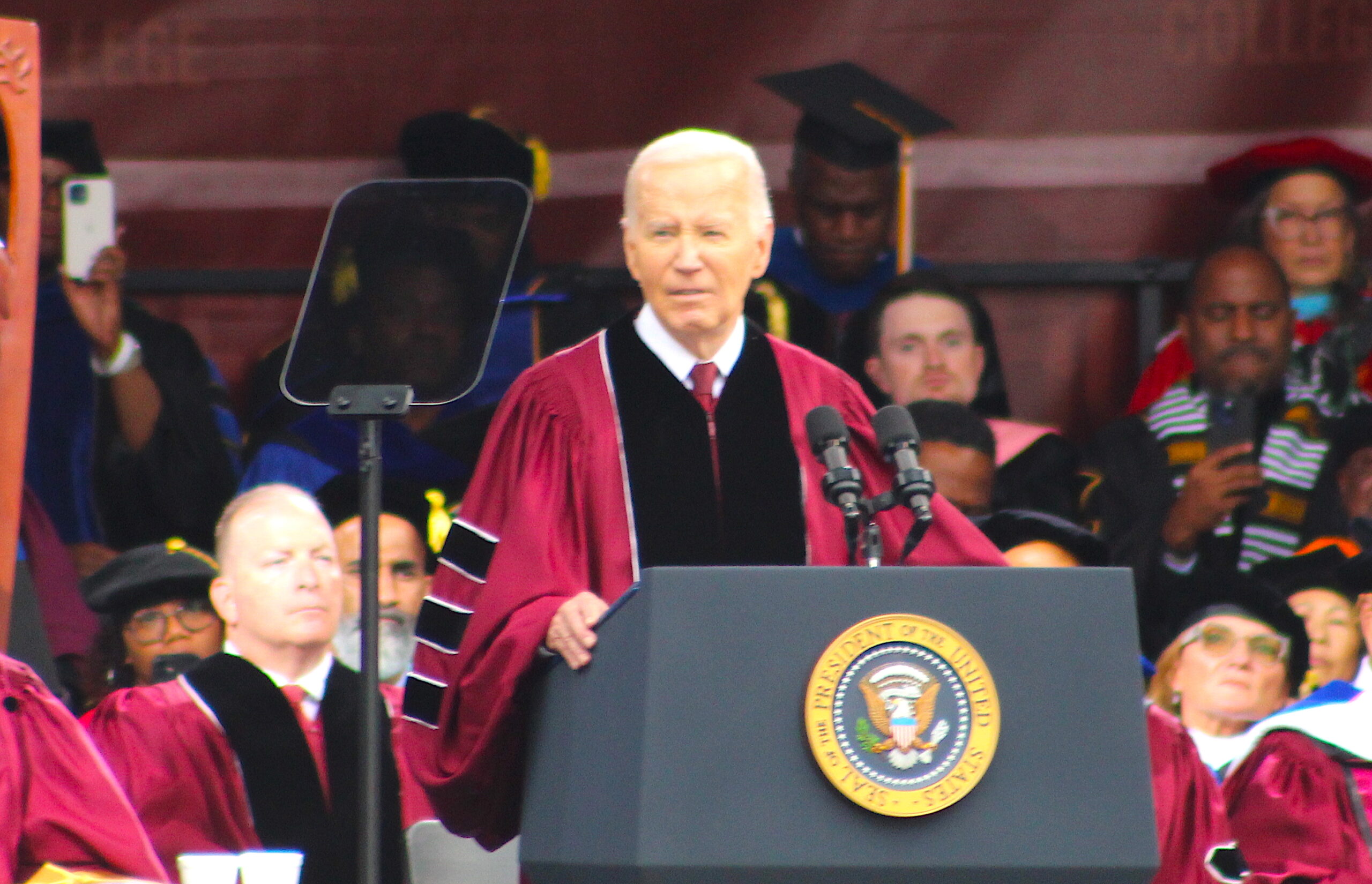 Following President Biden’s speech, most of the 2024 graduates remained in their seats, while a few stood up and cheered. All of the the Morehouse alumni, seated directly next to the graduates, gave Biden a standing ovation. Some family members and attendees chanted “four more years.”