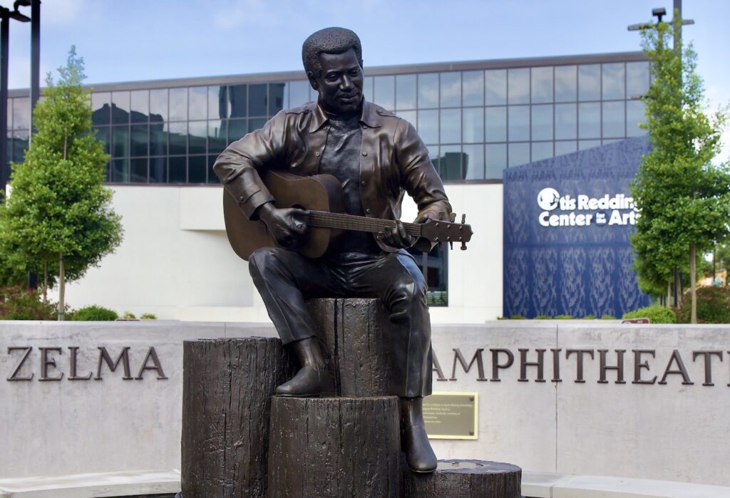 The Otis Redding Statue is now installed at the corner of Cotton Avenue and Cherry Street in downtown Macon, atop a new water fountain added to its design by sculptor Bradley Cooley Jr. It stands in front of the cultural hub the Redding family has built along Cotton Avenue, which includes the Zelma Redding Amphitheater and Otis Redding Center for the Arts (ORCA), and the Otis Redding Museum. The statue is an enduring reflection of Macon’s rich musical legacy, a community that’s been a vital home to helping Otis Redding, the Redding family, and many artists to flourish. The statue was previously displayed since 2002 in Macon’s Gateway Park overlooking the historic Ocmulgee River, and originally created by sculptors Bradley Cooley and Bradley Cooley Jr.
