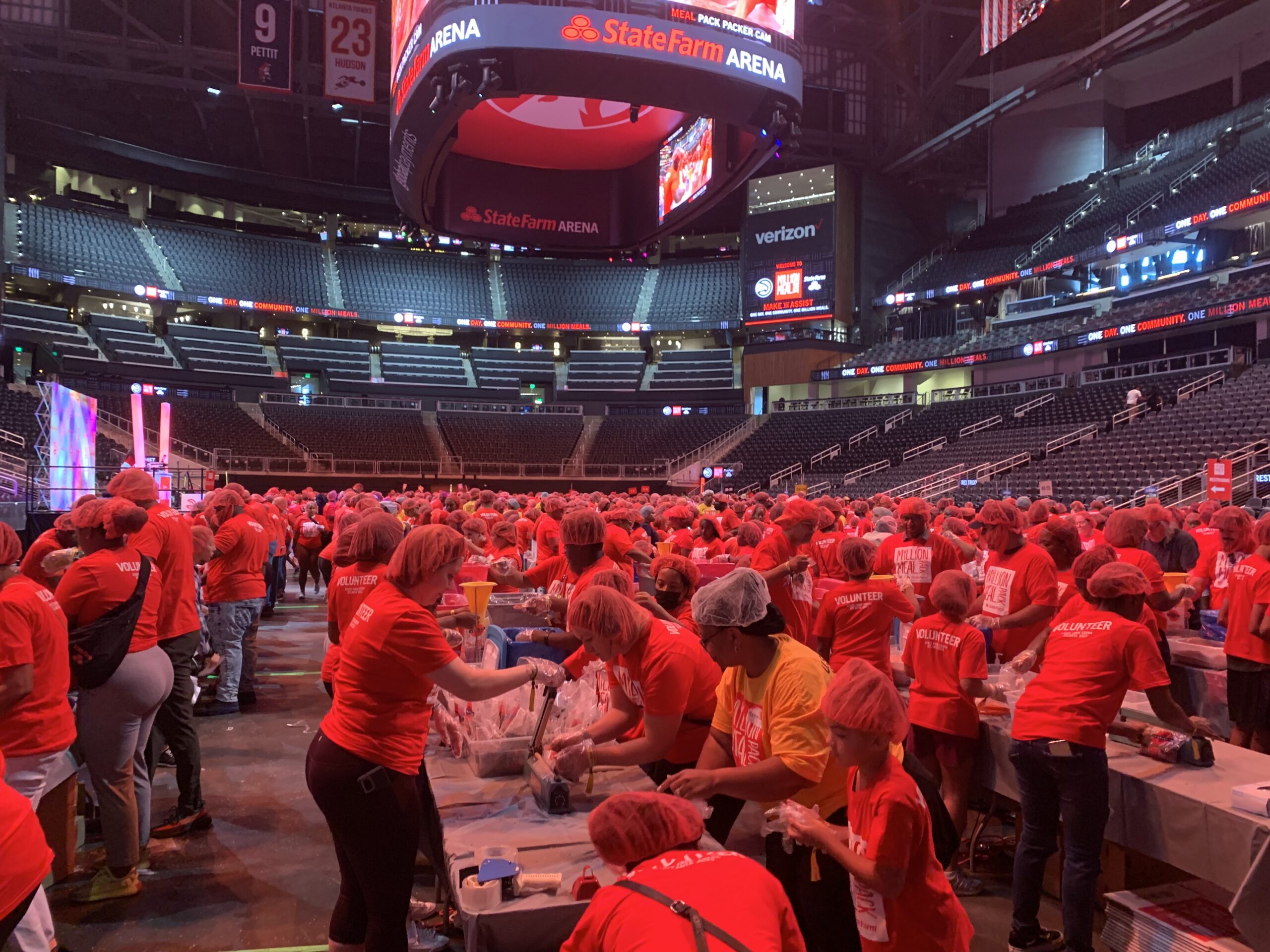 Now in its fifth year, the Million Meal Pack has become the Hawks’ largest single-day community service initiative, continuing its mission to combat food insecurity across metro Atlanta. On the arena floor, individuals, families, churches, schools, and corporate teams came together shoulder-to-shoulder, united by a shared purpose to help their neighbors in need.